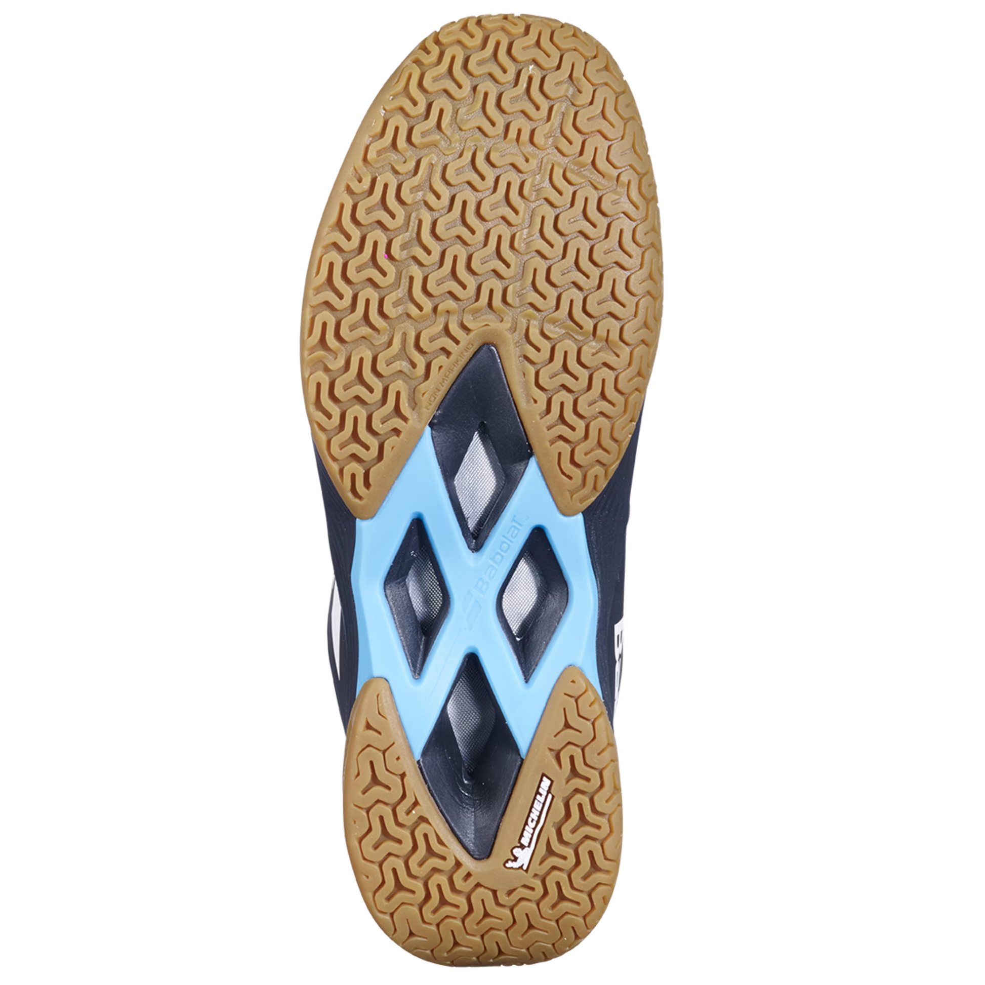 Michelin rubber has been developed specifically for badminton to provide the perfect combination of grip and durability on all types of indoor courts. A heavy-duty rubber guard covers the inner forefoot up to the toes for unparalleled upper durability.